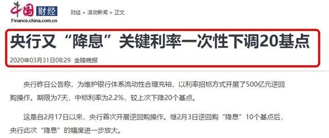 央行降息 贷款最佳时机 2020-04-23 20:09:56